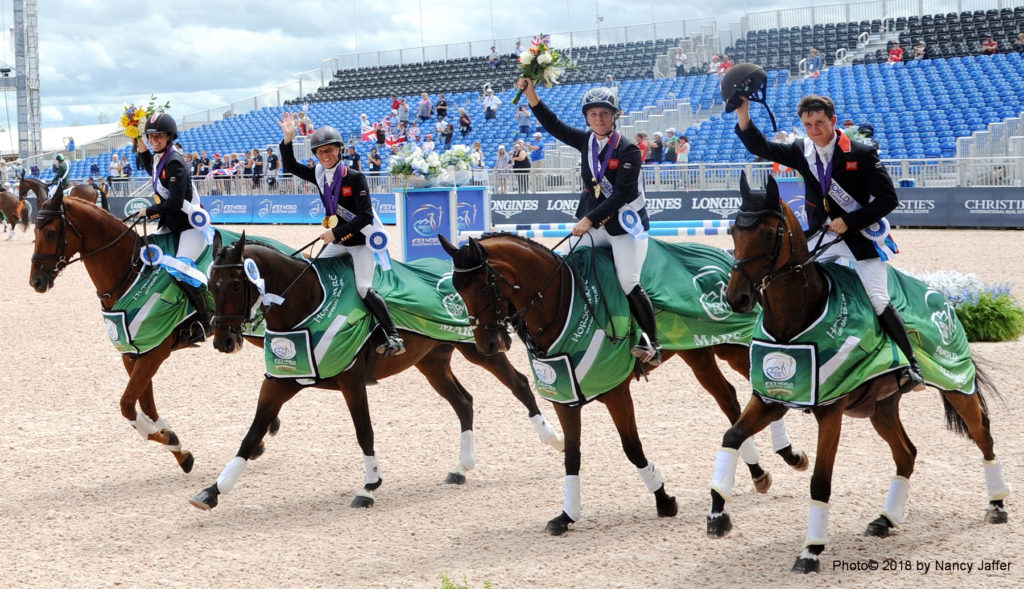 That wasn’t “My Country, ‘Tis of Thee” they were playing during the eventing medal ceremonies at the FEI World Equestrian Games this afternoon. The tune is the same, but it actually was Great Britain’s “God Save the Queen,” commemorating that nation’s team and individual gold.