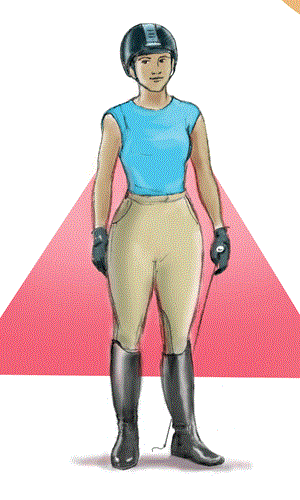 Here, she shares her advice for looking your best in breeches and beyond with special consideration for women’s unique shapes. Whether you find yourself top-heavy, bottom-heavy or more straight-lined, a few tips from this pro might change the way you think about riding clothes.