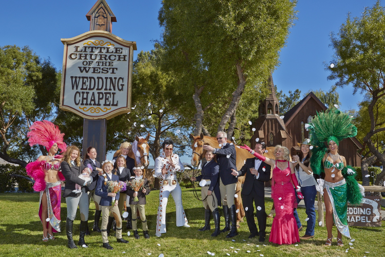 The horses – beautiful red-headed bride Romy and her chestnut bridegroom Rocky – are besotted with each other in real life. The pair were married by the King himself at The Little Church of the West in Las Vegas, setting for more celebrity marriages than any other wedding chapel in the world, boasting Betty Grable, Judy Garland, Dudley Moore, Cindy Crawford and Richard Gere amongst its celebrity celebrants. Even Elvis got hitched at The Little Church of the West when he and Ann-Margret recited their vows in the 1964 movie Viva Las Vegas.