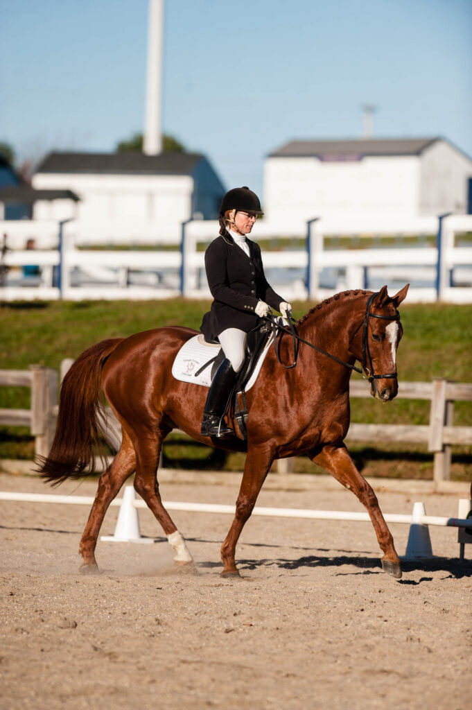 Time your change carefully so it doesn’t disrupt the rest of your ride. For example, if you plan to do it in the first corner, ask for a soft bend around the corner. Then make the change as your leg passes the letter and you begin your turn off the rail, and look ahead to the letter you’re aiming for–or just a stride or two before that. If you get flustered and forget to change your diagonal, don’t try to do it on the straightaway. Instead, wait until you reach the letter on the far rail and begin your turn around the next corner. Again, take advantage of your horse’s balance while he’s bending. So long as you make the change before you straighten onto the short side, the judge won’t mind.