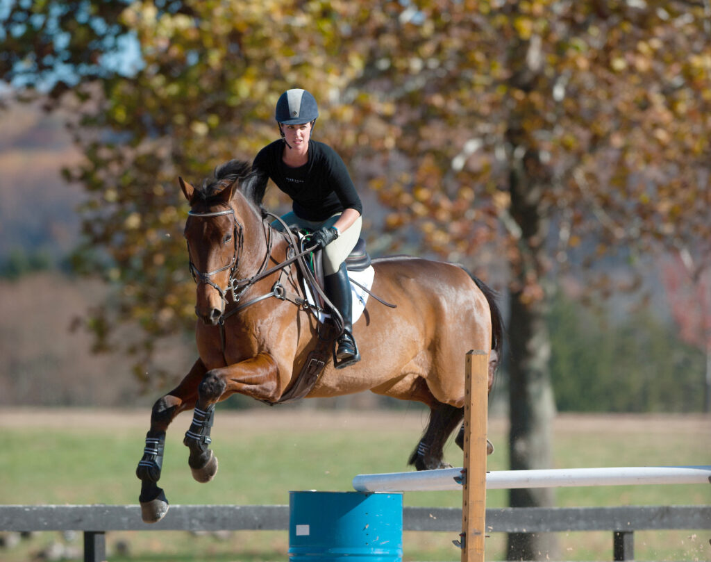 “With young horses, it’s very important that we’re training them to look and seek the fences and prick their ears on the jumps, so they want to take you there. Horses actually enjoy jumping and you can see it when the prick their ears forward wanting to meet the fence.”