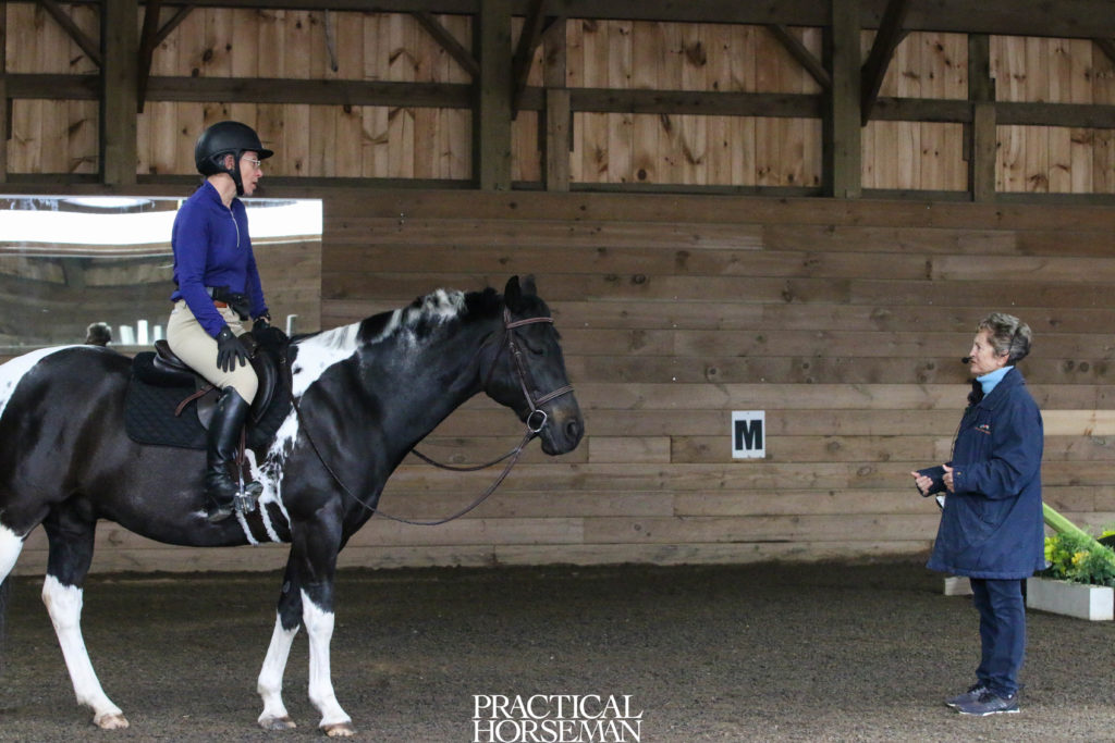 A main training theme emerged with all of the sessions: Use your leg to ride forward to engage the horse’s hind end and maintain that with a light connection with the hand. As Engle said to Lily Baker who rode Champ in the first session, “You can never use enough leg, even with a sensitive horse.”